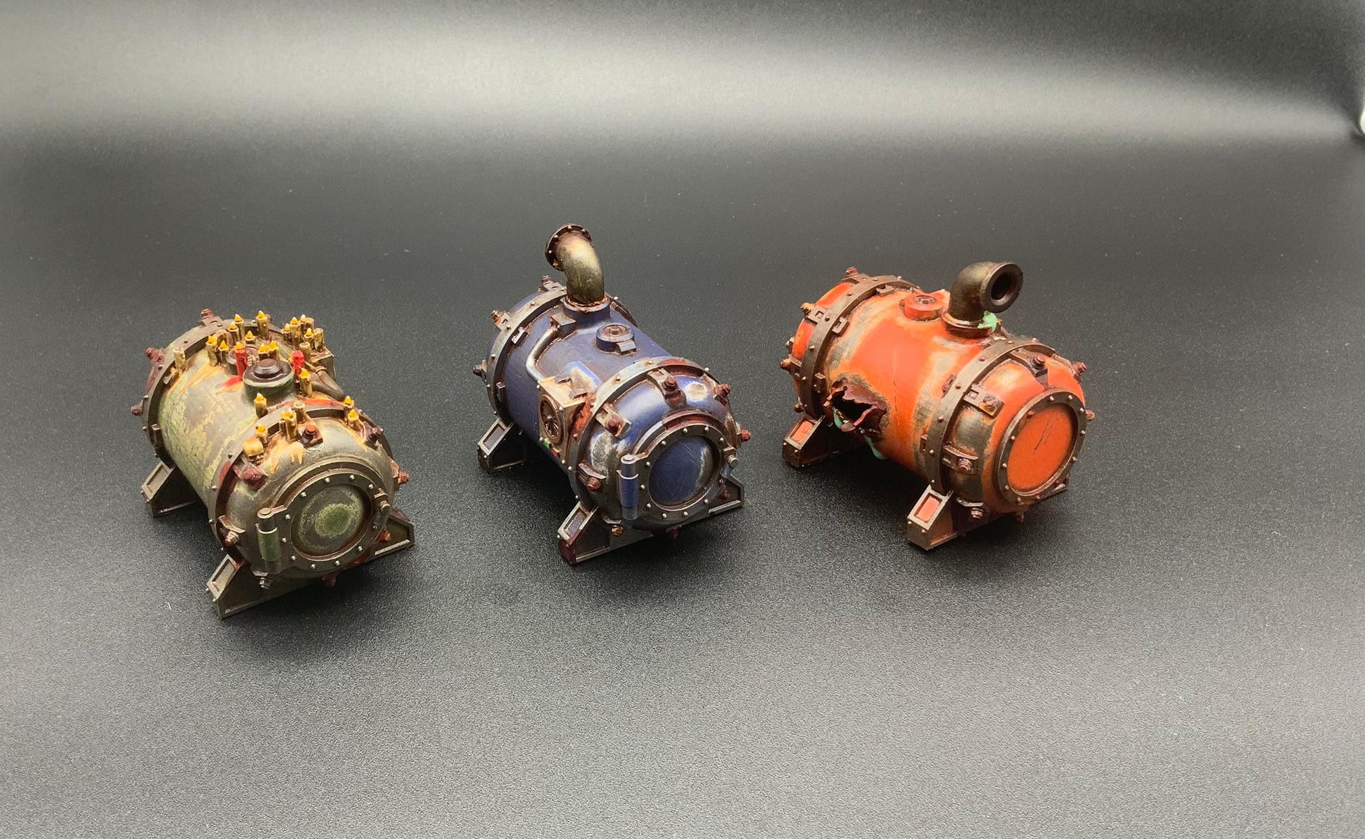 Three different Gunk Tanks to choose from, One functional, One Damaged and One adorned with candles and skulls. The kit also includes 4x 8mm pipe sections.